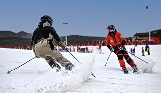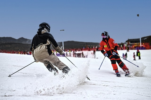 2024年12月,滑雪爱好者在内蒙古自治区呼和浩特市马鬃山滑雪场滑雪。受访者供图