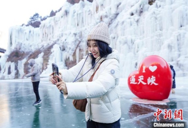 日本旅游达人知香在山西长治通天峡景区“打卡”。 郭峰 摄
