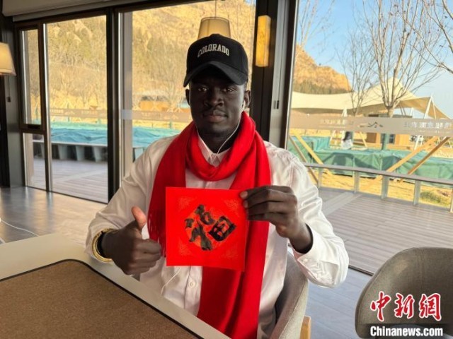 古奇展示自己写的“福”。 郭峰 摄