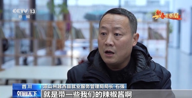 凉山州越西县就业服务管理局局长 石强:出门总有思乡的时候,就带一些辣椒酱、豆腐乳,这些带过去让他解解馋,帮助他适应。