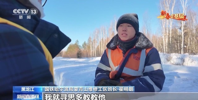 国铁哈尔滨局蒙克山维修工区班长 翟明朗:就觉得他从大西北来到大东北,远离亲人,也挺心疼他的,我就寻思多教教他,让他少走一些弯路。