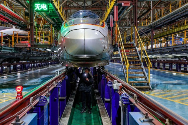 中国青年报客户端讯(中青在线见习记者 陈思阳 记者 何欣)近日,随着2025年春运大幕的拉开,各地交通枢纽一片繁忙景象。1月15日深夜,当大多数人沉浸在梦乡中时,位于北京大兴区的中国铁路北京局北京动车段北京南动车运用所内却是灯火通明,检修工人们正在热火朝天地对一列列高铁动车进行检查养护。该所担负着京广高铁和京沪高铁部分高铁动车组列车的检修养护任务,因此被形象地称为“高铁医院”,检修工人也称为“动车医生”。为了让旅客们能安全、顺利地回家过年,大伙儿正争分夺秒地忙碌着,全力保障春运期间高铁客车的正常运行。