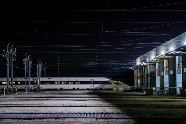 2025年1月15日,北京动车段北京南动车运用所,检修车间内灯火通明。中青在线见习记者 陈思阳/摄