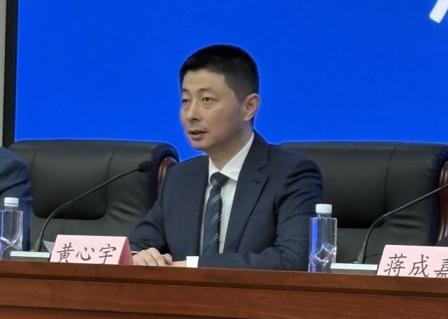 黄心宇在发布会上回答记者提问。中青报·中青网记者 刘昶荣/摄