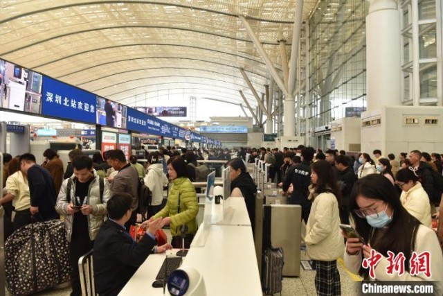 乘客在深圳北站排队进站乘车。广铁集团 供图