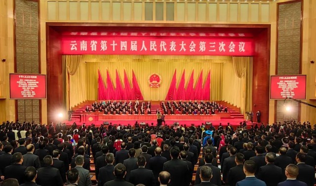 1月18日,云南省第十四届人民代表大会第三次会议在昆明开幕。