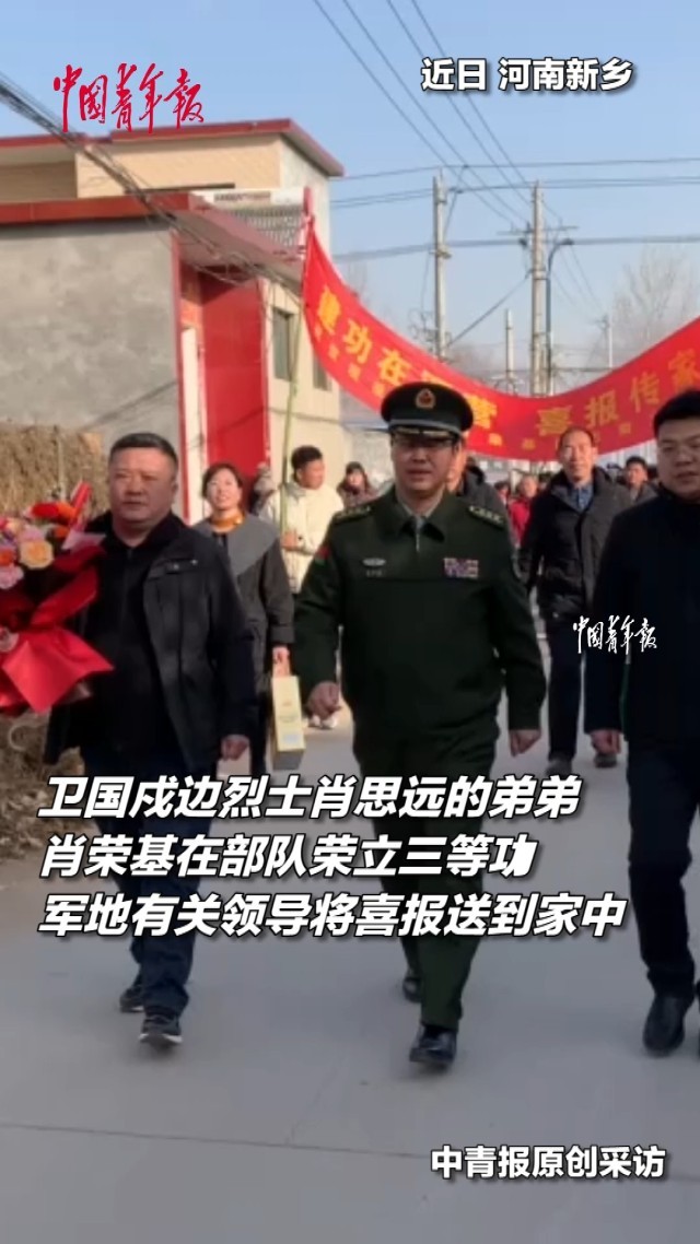 卫国戍边烈士肖思远的弟弟肖荣基在部队荣立三等功,喜报被敲锣打鼓送到家中