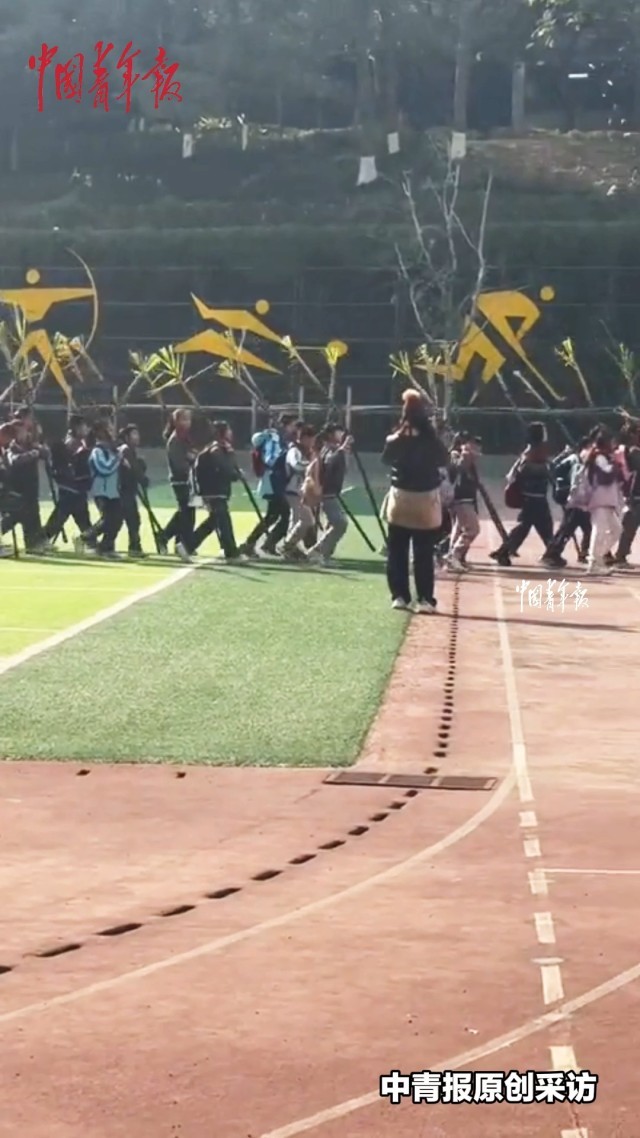 小学生们的期末奖励是甘蔗,扛着比人高的礼物回家倍儿有面
