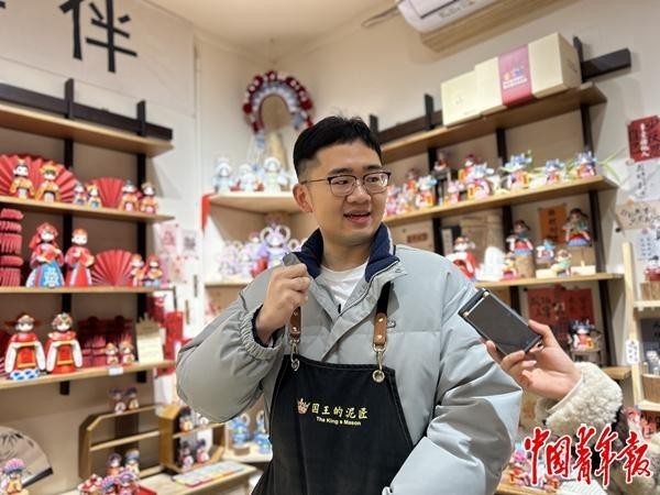 在沙坪坝区磁器口,手工软陶店“国王的泥匠”店主张智杰接受采访。中青报·中青网记者 魏其濛/摄
