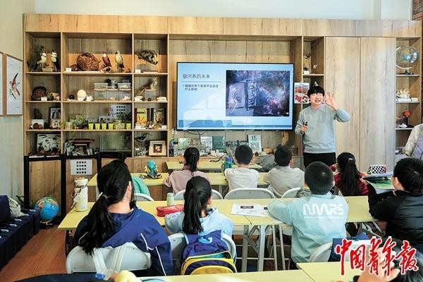 1月16日,北京市西城区,孩子们在广阳书院学习天文课。陈宇龙/摄