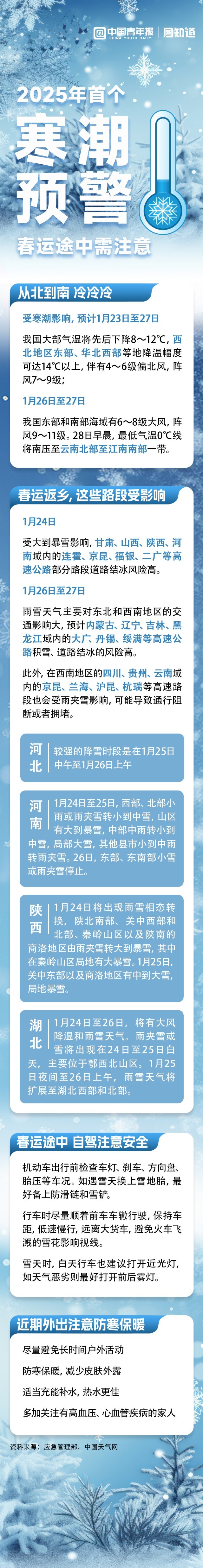 图知道 | 2025年首个寒潮预警来袭,春运途中需注意