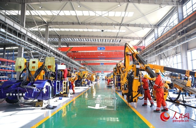 生产车间里,工作人员在生产线上穿梭忙碌,多台专用设备正在紧张总装中。人民网 宋芳鑫摄
