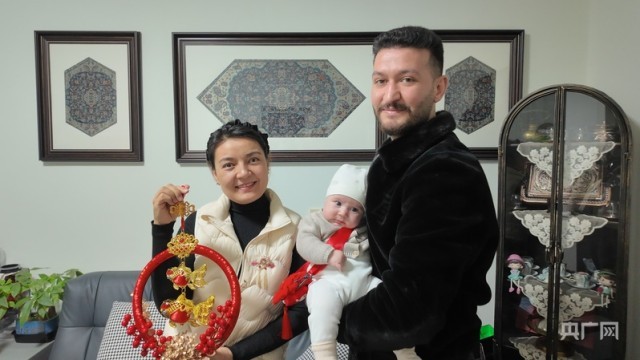 冉德文将买好的礼物送给妻子和女儿,“我非常喜欢,他总是知道我喜欢什么样的款式。”冉德文的妻子努尔比亚·吐地说。“今年是宝宝出生的第一个春节,所以非常有意义。我觉得过年就是一家人在一起。”冉德文说。