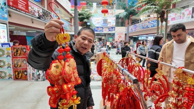 “这些挂件是喜庆、招财的意思,这款鲤鱼跃龙门的挂饰象征着事业顺利、年年有余,是我们家的经典款,今年尤其卖得好,我这里货已经不多了。”在义乌国际商贸城一区,一家新年挂饰的商户对记者说。