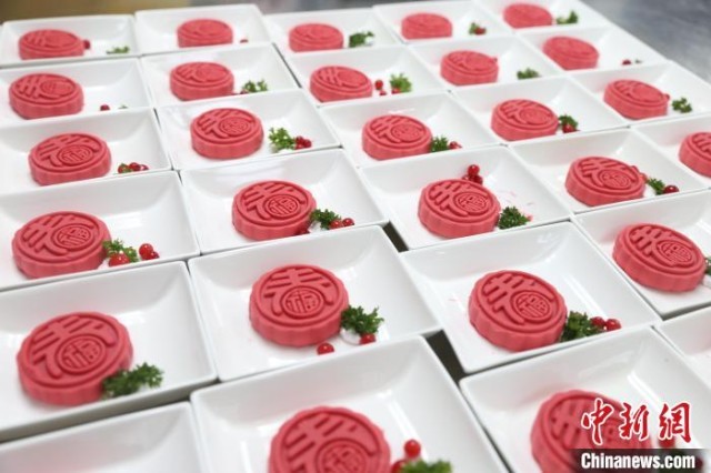 已经装盘完成的春节特色“春”字甜品。东航供图