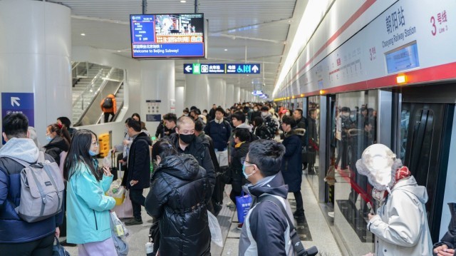 春运期间,地铁朝阳站所在的3号线调整运行图,将平峰时段列车运行间隔缩短,增加运力投放40%,并在重点日延迟运行时间至凌晨,做好短途接驳和夜间到达旅客疏运。