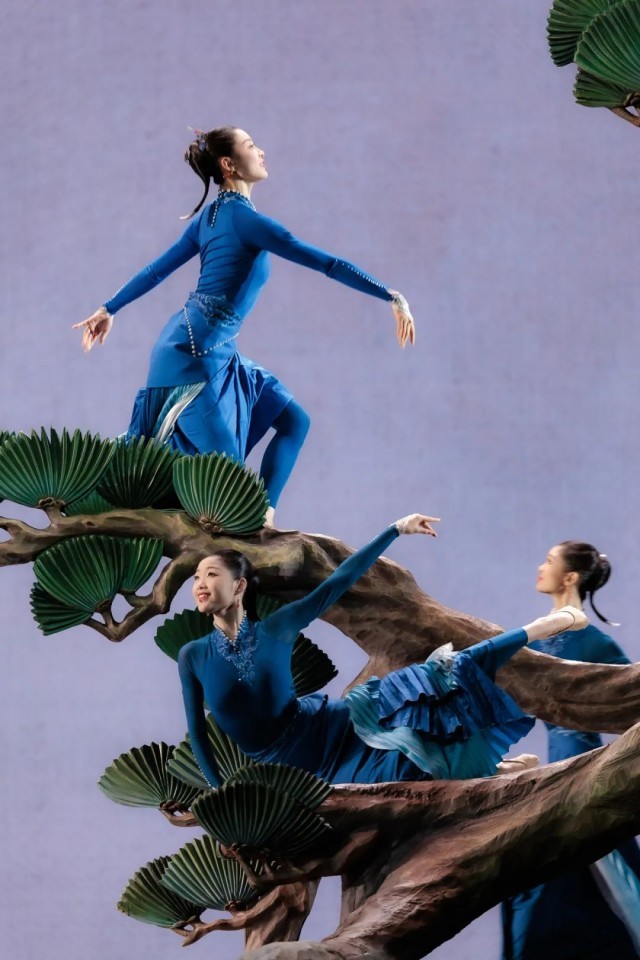 当舞台变成一方宋画尺牍,背景成为留白氤氲的宣纸,舞者化作工笔描摹的墨痕,横轴竖幔间,十只报春“喜鹊”从古卷中跃然而出。