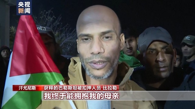 获释的巴勒斯坦被扣押人员 比拉勒:谢天谢地,23年过去了,我终于能拥抱我的母亲,这真是种难以言说的感觉。我们希望所有的被扣押人员都能得到释放。