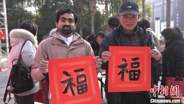 中新网台州2月1日电(傅飞扬 林祥华 聂恬)剪纸、写“福”字、做糖画……春节假期,来自巴基斯坦的穆贾(Mujahid Rasheed)走进浙江省台州市三门县年货集市,沉浸体验中华传统文化,感受浓浓的年味。