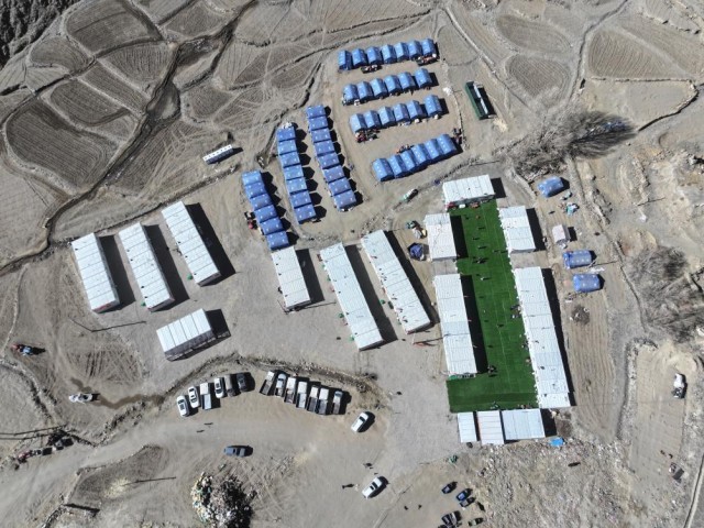 1月28日,定日县长所乡古荣村安置点,所有受灾群众已搬入板房(无人机照片)。新华社记者 洛卓嘉措 摄