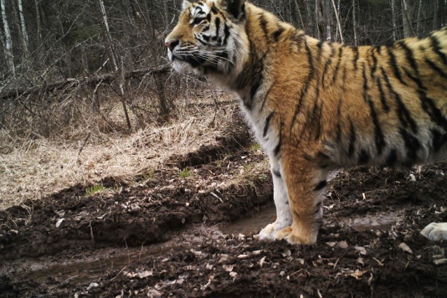这是红外相机在东北虎豹国家公园龙江森工绥阳片区拍摄的野生东北虎(2023年4月29日摄)。新华社发(龙江森工集团绥阳林业局公司供图)