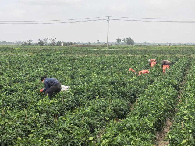 海南省儋州市海头镇红洋村村民符克儒告诉记者,年前朝天椒还能卖到5块多一斤,然后降到4块、3块、现在只能卖两块多了。“红洋村种植的农作物种类较多,包括长期作物甘蔗、香蕉等,反季作物朝天椒、泡椒、南瓜等,不过规模都不算大,不成气候。”符克儒说。
