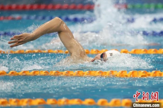 3月19日,在山东青岛举行的2025年全国春季游泳锦标赛中,游泳奥运冠军孙杨夺得男子400米自由泳银牌。图为孙杨在比赛中。中新社记者 田雨昊 摄