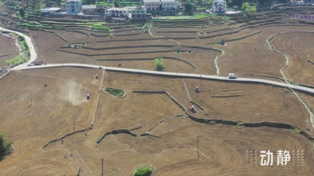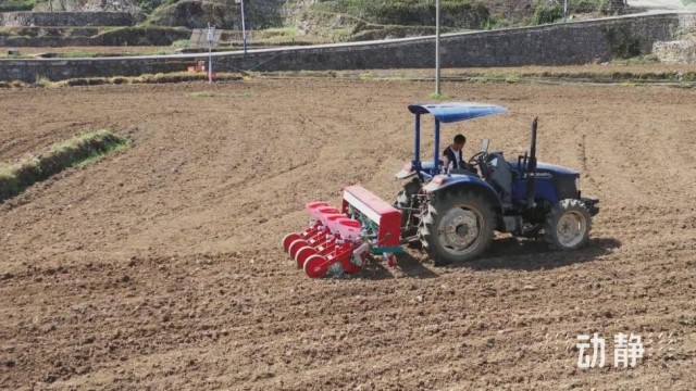 在贵州长顺县思京村,旋耕机来回穿梭,为大豆玉米制种播种做准备。