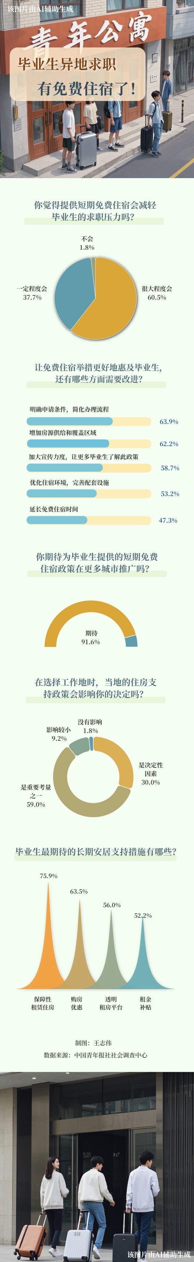 短期免费住宿、青年公寓优先安排、租房购房补贴“一键到账”……近几年,各地推出一系列住房优惠举措,吸引年轻人前去发展。中国青年报社社会调查中心的调查发现,89.0%的受访毕业生表示,当地的住房支持政策会影响自己在未来工作地上的选择。提供保障性租赁住房和购房优惠是受访毕业生最期待的长期安居支持措施。你期待为毕业生提供哪些住房支持政策?