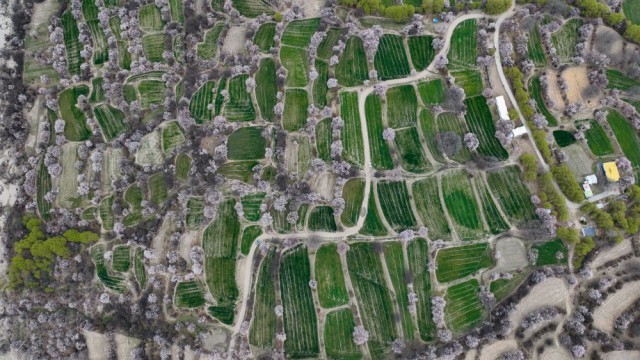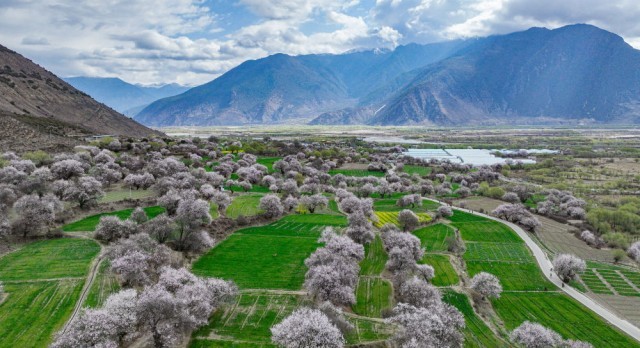 这是4月4日拍摄的林芝市南迦巴瓦峰脚下的农田(无人机照片)。