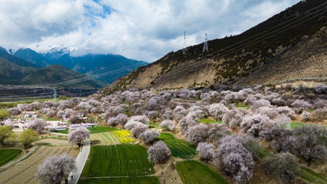 这是林芝市巴宜区朵当村的桃花景色(4月3日摄,无人机照片)。