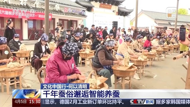 在浙江,流传着一句俗语——“清明大如年”。浙江是我国丝绸生产和贸易的中心,清明之后,当地蚕农就会开始新一年的忙碌,所以人们通过节庆活动,祈盼养蚕丰收。随着现代科技的发展,在现代化的养蚕工厂里,采桑养蚕的活动已经可以摆脱节气的束缚,实现了“季季有春天”。
