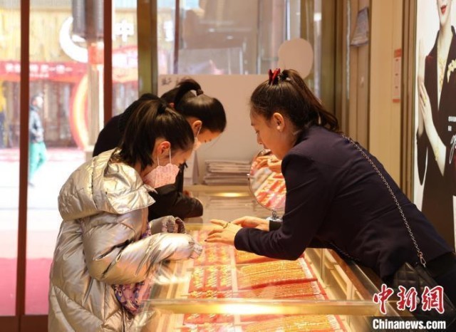 资料图:消费者在商场内选购黄金饰品。 中新社记者 于晶 摄