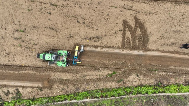 图为3月31日拍摄的“无人筑埂机”(无人机照片)。新华社记者 周义 摄