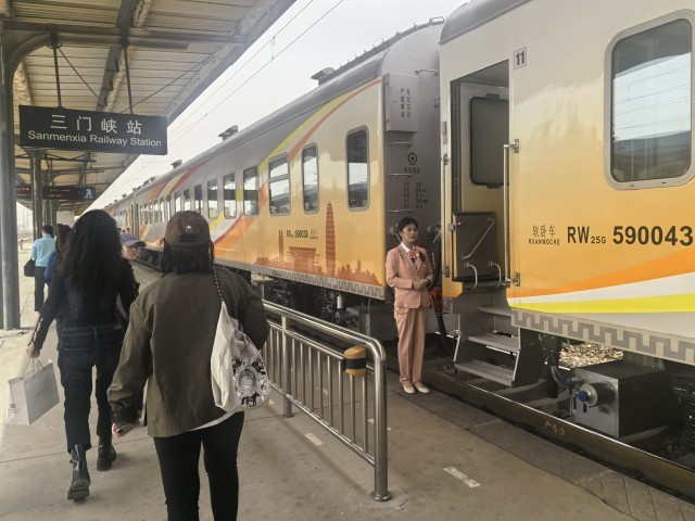 中国青年报客户端郑州4月9日电(中青报·中青网记者 潘志贤 实习生 石静怡 李诗蕊)4月9日8时30分,“中原铁道·大河之南号”特色旅游列车从郑州火车站缓缓驶出,开往三门峡站;当天15时10分,在三门峡市畅游庙底沟博物馆后,旅客又乘坐同列适老化列车从三门峡站返程,于18时21分抵达郑州站。经过试运行后,该车将于4月中旬正式上线运营。