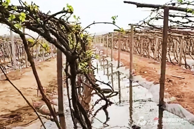 2022年,鄯善县鲁克沁镇迪汗苏村葡萄地在采用高效节水灌溉之前,大水漫灌的场景。热杰甫·吐尔逊 摄