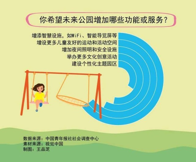 “常去的公园多了一个儿童滑梯和攀爬设施,对低幼儿童很友好,孩子在公园待的时间更长了。”90后家长宋宇希望公园多一些儿童友好的活动空间,“一方面要有运动锻炼设施,另一方面希望有自然科普教育功能。我在网上看到有的公园有大型旋转积木拼搭设施,拼好后是一只大恐龙或其他珍稀动物,孩子们在玩耍中就获得了科学知识,希望身边的公园里能多一些这类设施”。