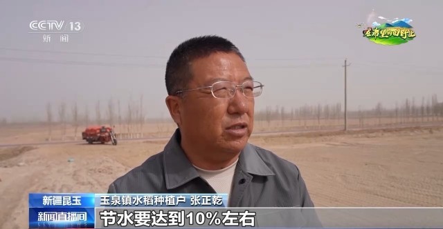 新疆昆玉市玉泉镇的4000亩水稻种植基地,与南方在水田里种植水稻不同,在这里种植采用的是水稻旱直播技术,不用经过灌田、育秧、水田移栽等环节,直接将经过拌种包衣处理的稻种播种到地里,再进行灌溉。
