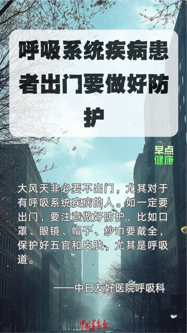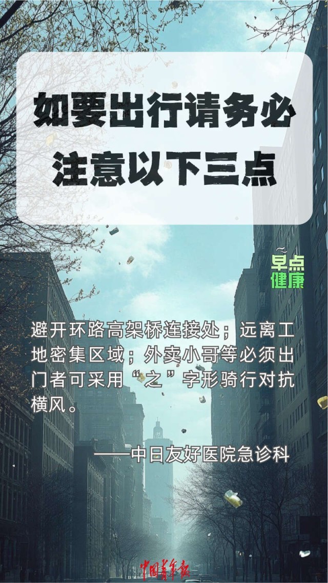 根据中央气象台消息,预计4月11日下午至13日,华北地区将出现历史同期罕见持续性大风,北京、天津、河北等多地发布大风橙色预警,并伴随气温骤降。这样的极端天气可能有哪些健康风险?该如何应对?中日友好医院专家团队给出的建议请收好!