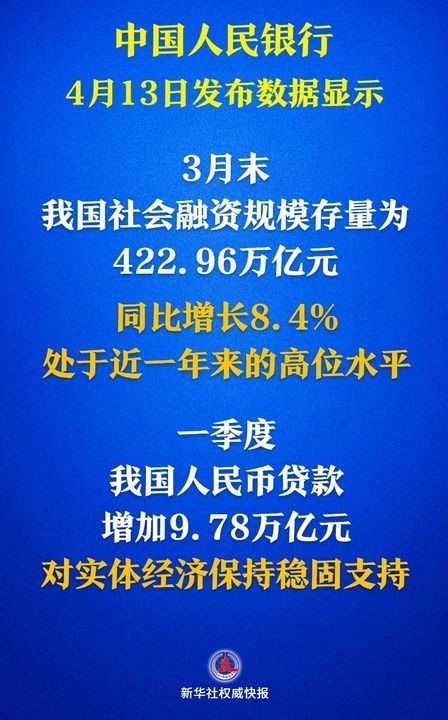 4月13日中国人民银行发布了主要金融数据,首季社会融资规模增量超15万亿元、新增贷款9.78万亿元、3月末广义货币M2余额同比增长7%……一个个数据展现着金融对实体经济保持稳固支持,也折射出实体经济需求持续回暖。