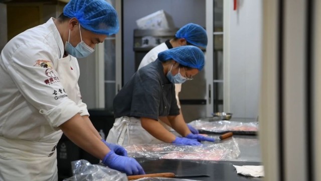 菏泽牡丹栽培始于隋唐,至今已有1500多年的历史。文旅产业持续升温,也带动了牡丹特色产品的消费热潮。在菏泽市区的一家蛋糕房里,糕点师们正在制作一款富有牡丹元素的食品。