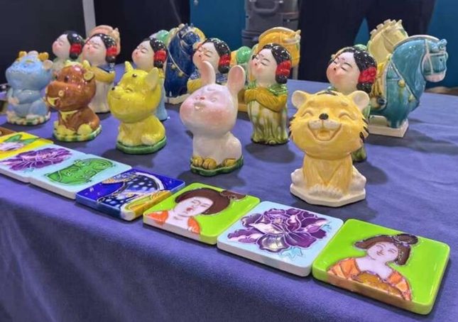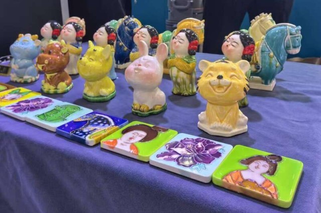 唐三彩展台上的文创类产品。中青报·中青网见习记者 戴瑶/摄