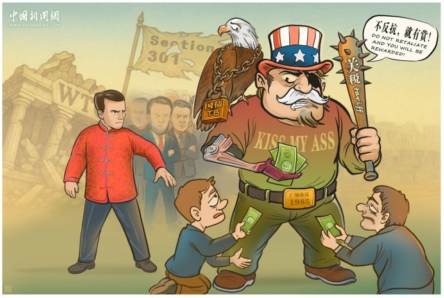 4月10日,白宫官方社交媒体账号发文:DO NOT RETALIATE AND YOU WILL BE REWARDED(不要报复,你就会得到奖赏)。美国一方面肆意挥舞关税大棒进行讹诈,一方面恐吓他国不要报复,色厉内荏的“恶霸”形象跃然纸上。(作者 黄鹤 傅军杰 王春雷)