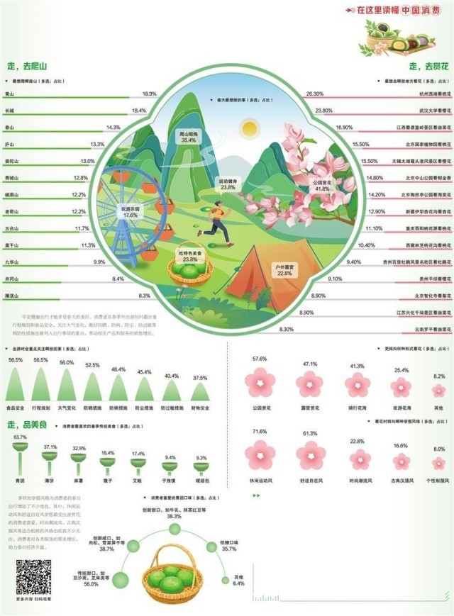 春风拂过,大地不断焕发生机的同时,消费市场也迎来新变化。生机盎然的春景加上适宜的气温,让赏花踏青、爬山锻炼等活动成为年轻人追求春日仪式感的热门选择。人们出行愿望增强、多元消费场景融合焕新,春日经济不断释放新活力。