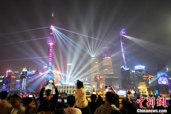 4月19日晚,为庆祝浦东开发开放35周年,上海黄浦江畔举行“潮涌东方,光启未来”主题展演,吸引民众欣赏光影盛宴。