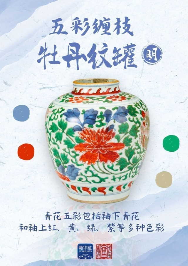 这件青花五彩瓷器色彩缤纷、纹饰生动