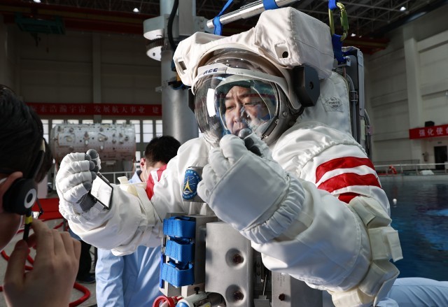 2025年3月12日,陈冬穿着水下训练航天服。徐部/摄