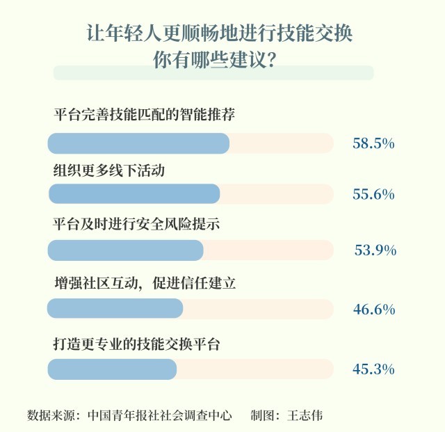 55.6%受访青年期待组织更多线下技能交换活动