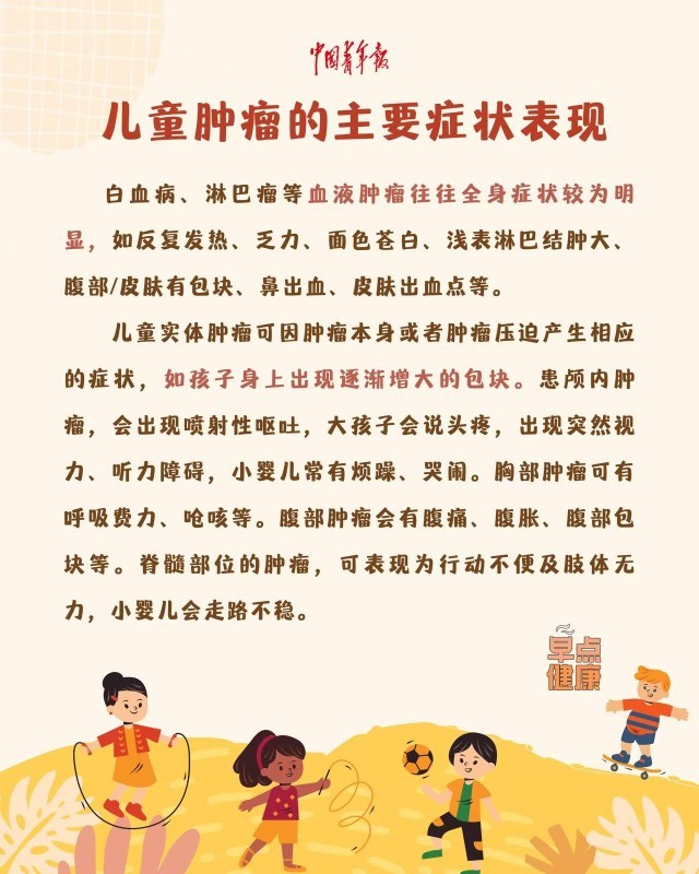 肿瘤是威胁我国居民健康的一大“杀手”,在不少人的印象中,只有成年人会得肿瘤,实际上并非如此,国家儿童医学中心北京儿童医院肿瘤内科接诊过大量得肿瘤的儿童。为了让更多孩子和家庭远离肿瘤,该科室整理了一套完整的关于儿童肿瘤防治的知识贴。