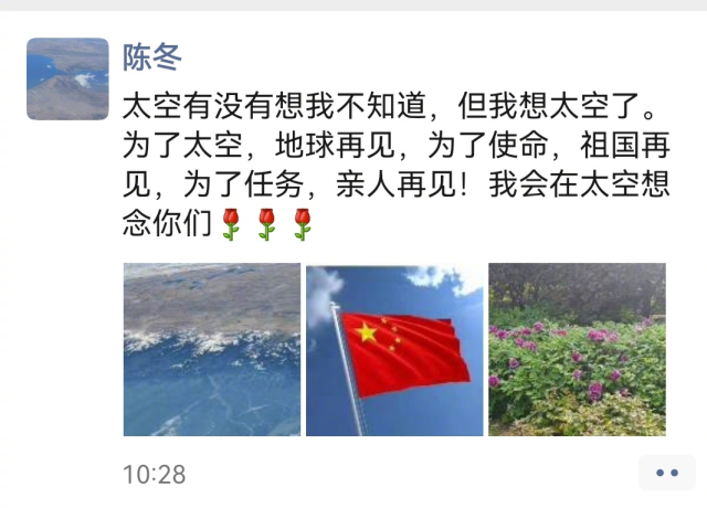 上午,陈冬发了朋友圈:“太空有没有想我不知道,但我想太空了。”